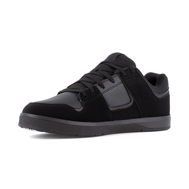 Stick it to 'em at work: the DC Cure Work Men's Black Slip-Resistant Work Shoe is a DC mainstay with enhanced sticky slip resistant outsoles and gritty features like hard-wearing uppers combined with mesh interiors for increased breathability. Delivering a timeless look and a standard construction, these everyday slip-resistant work shoes are sturdy and ready for you and your crew.